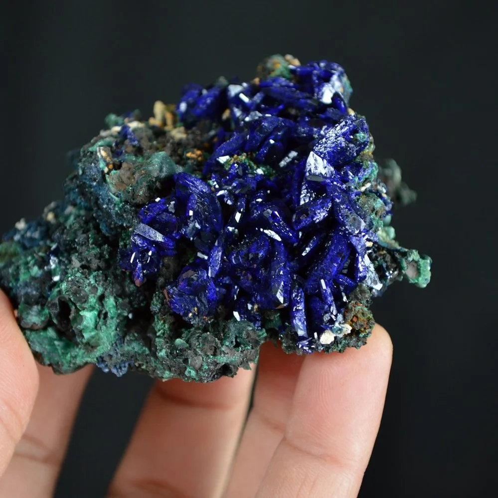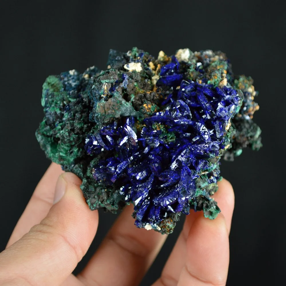 Better Larger Blue Azurite Crystal Vug with Green Malachite Cluster