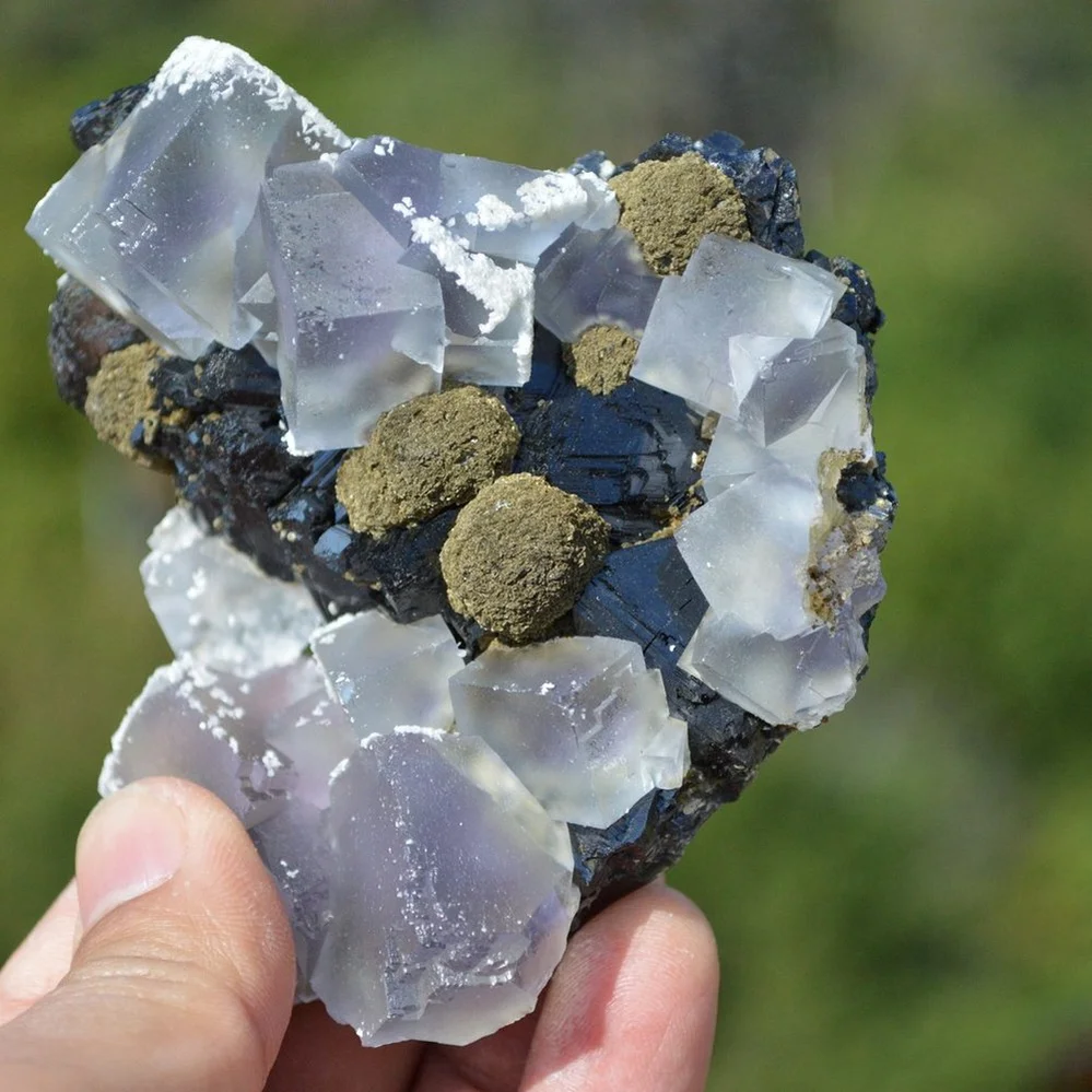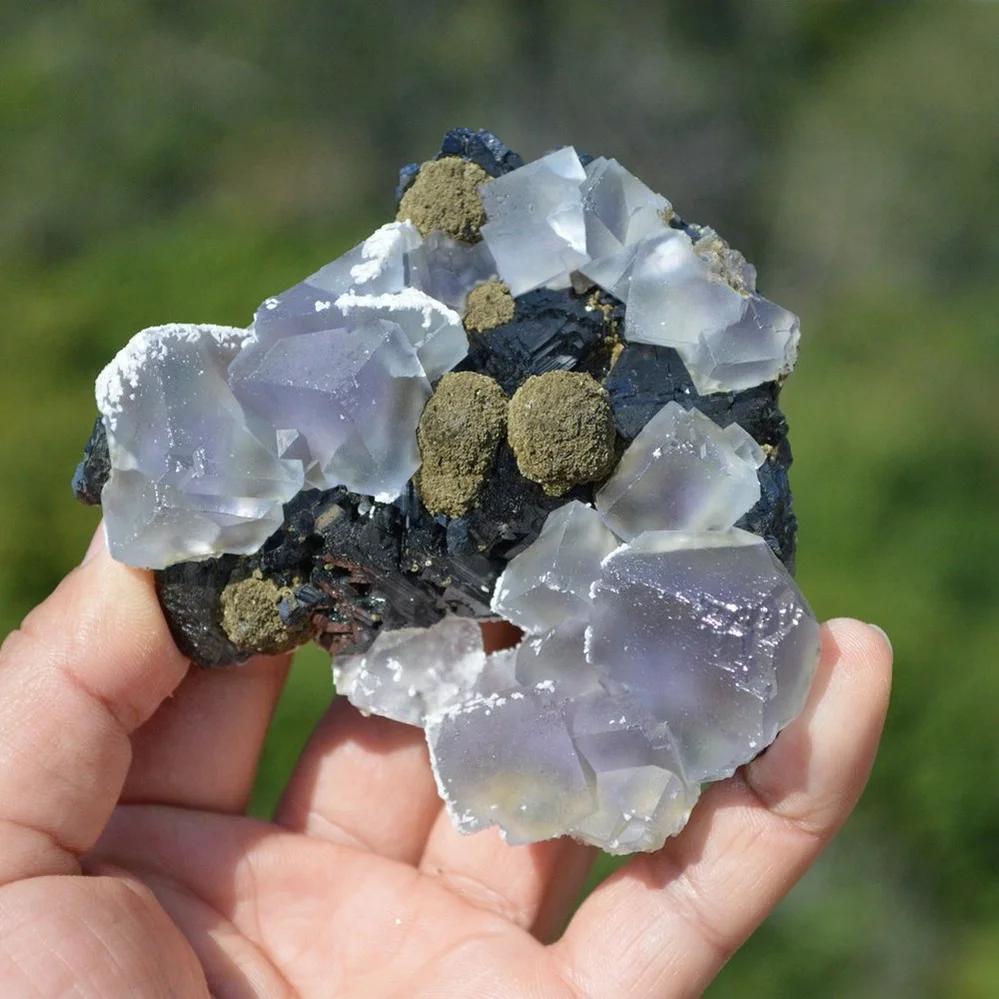 Fluorite with Christophite, Epidote, Calcite crystals (Floater)