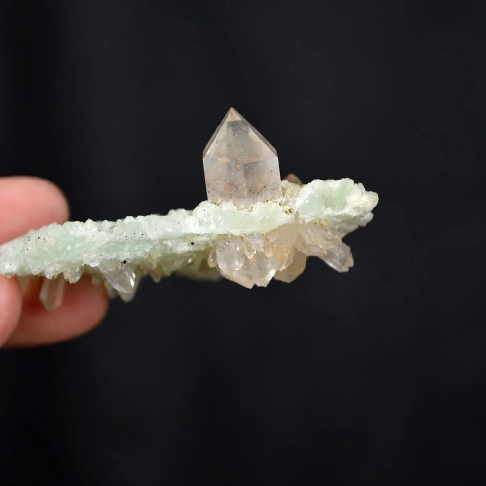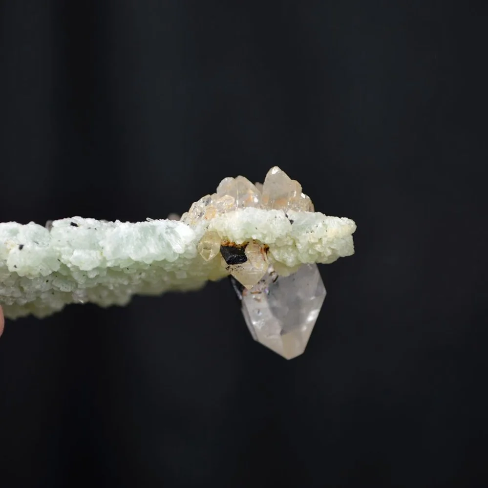 Prehnite with Babingtonite and Quartz crystals
