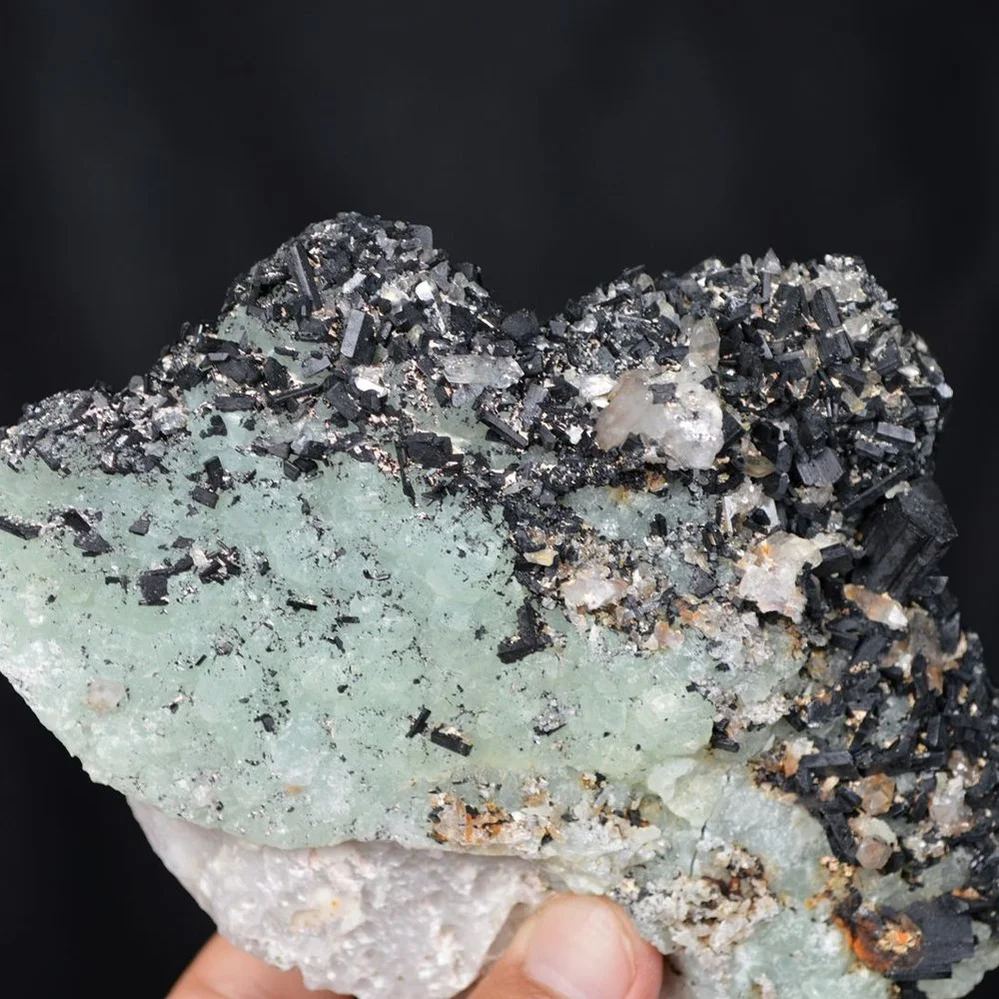 Prehnite with Babingtonite and Quartz crystals