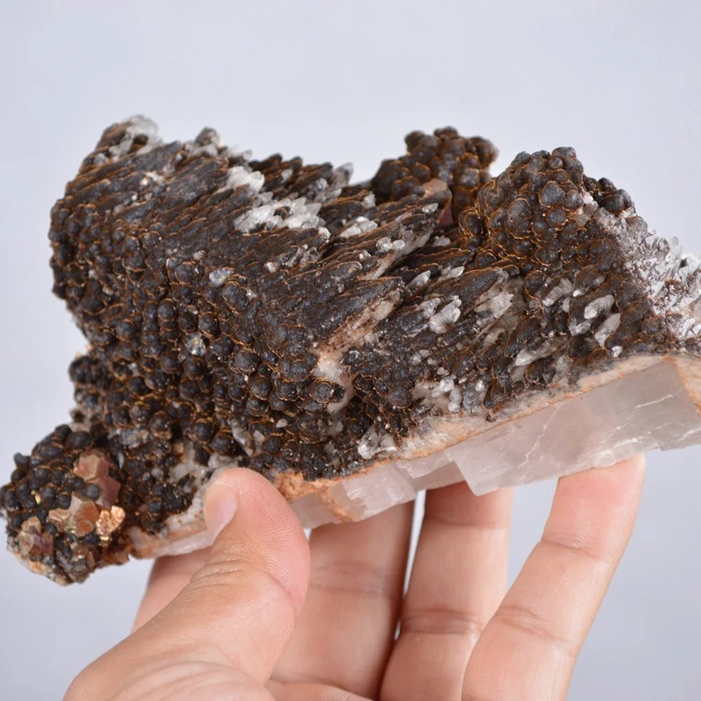 Pyrite Embed In Botryoidal Goethite and Calcite Cluster Crystals