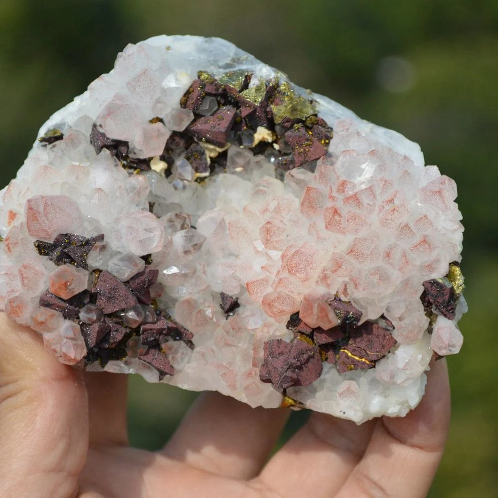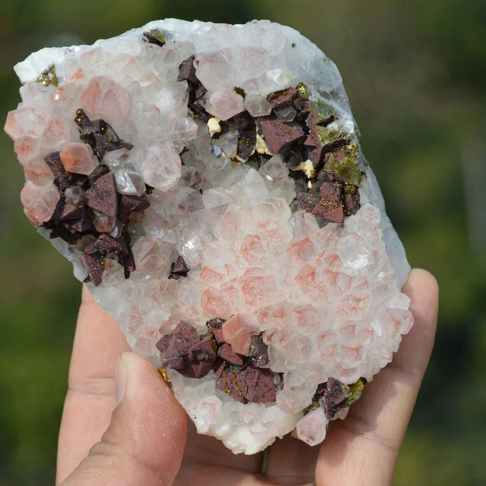 Red Quartz With Chalcopyrite Crystals