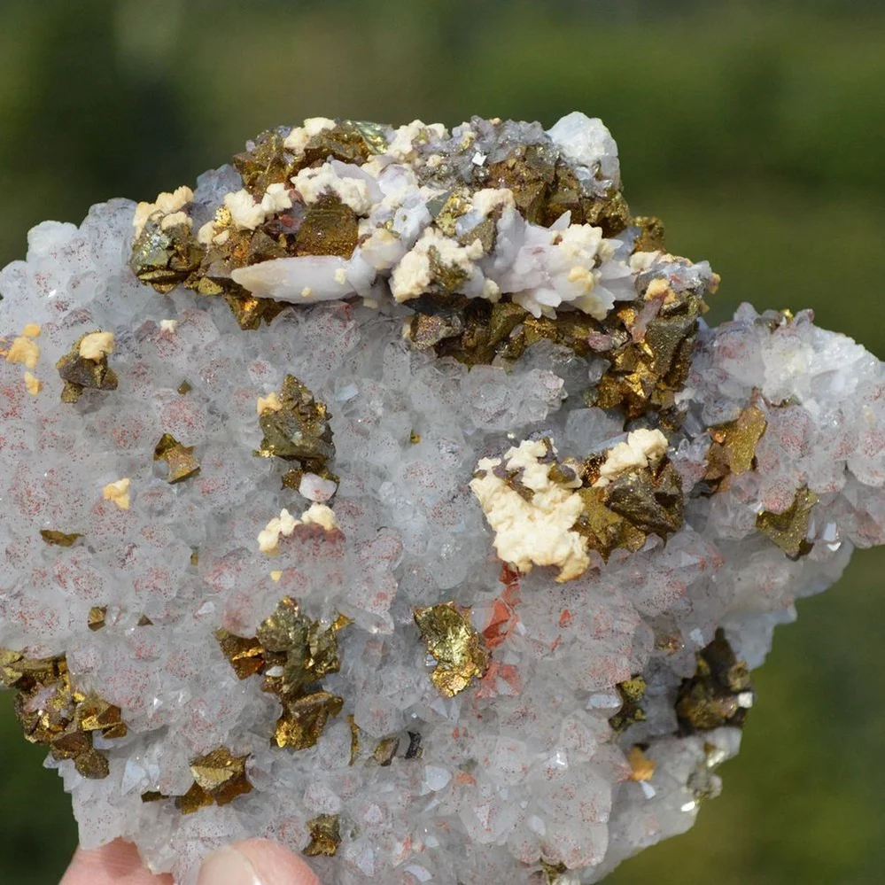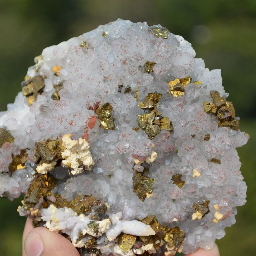Red Quartz With Chalcopyrite, Dolomite, Calcite Crystals