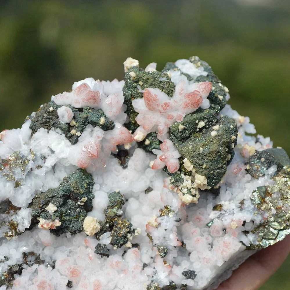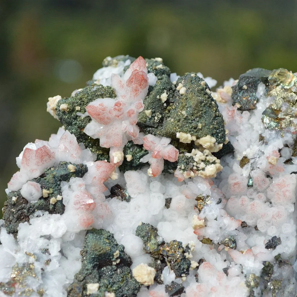 Red Quartz with Chalcopyrite, Dolomite crystals