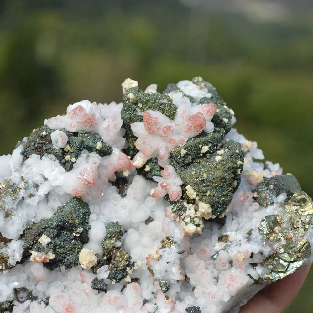 Red Quartz With Chalcopyrite, Dolomite Crystals