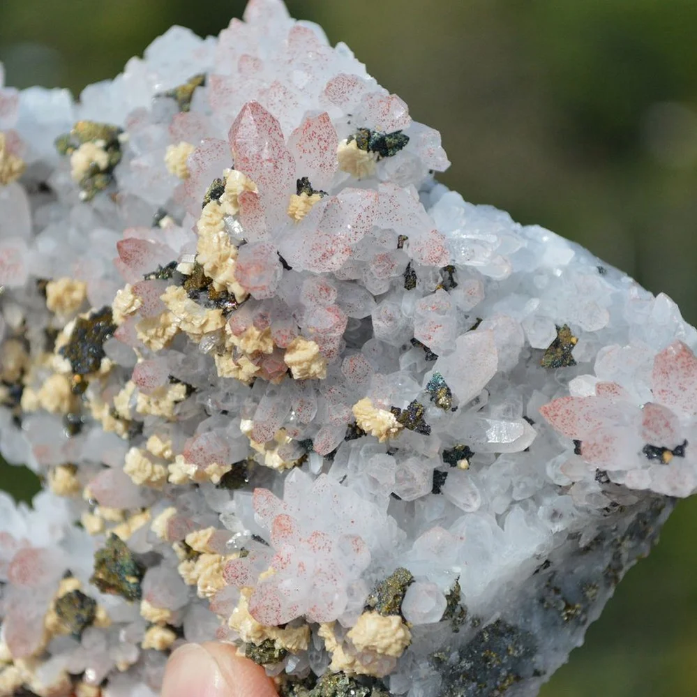 Red Quartz With Chalcopyrite, Dolomite Crystals