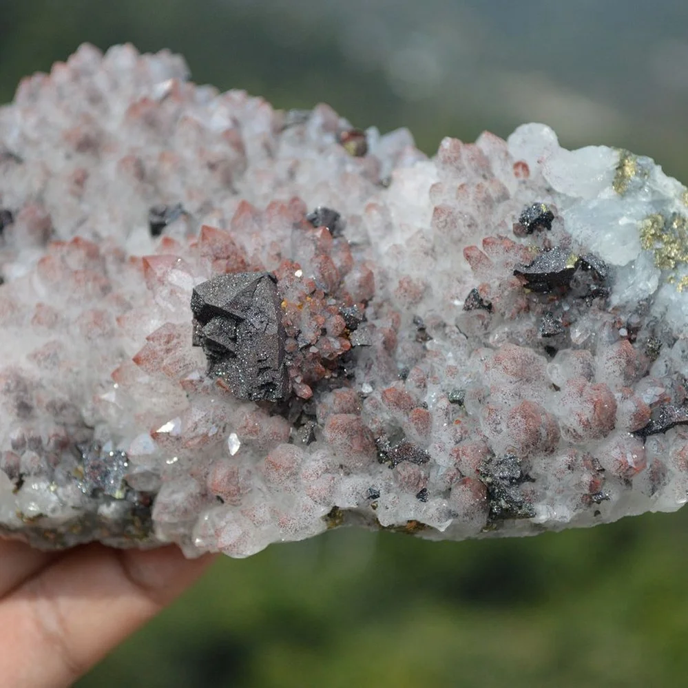 Red Quartz With Chalcopyrite, Pyrite Crystals