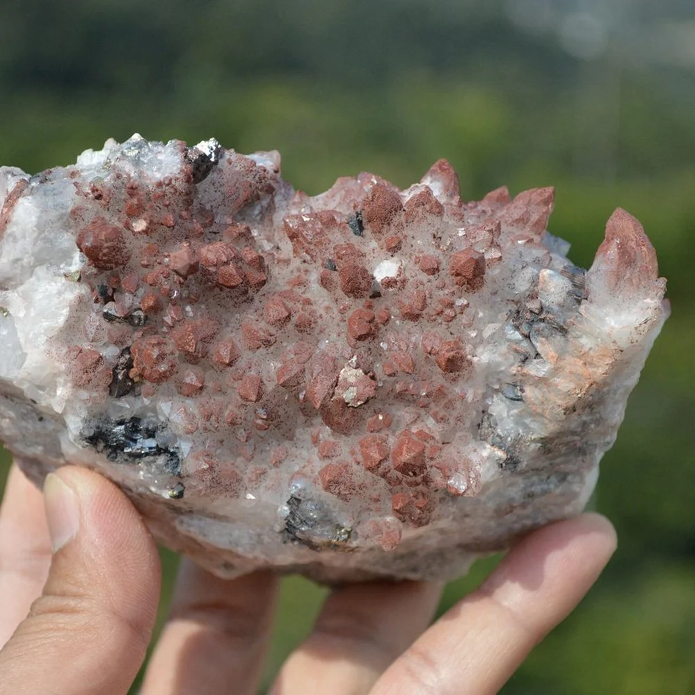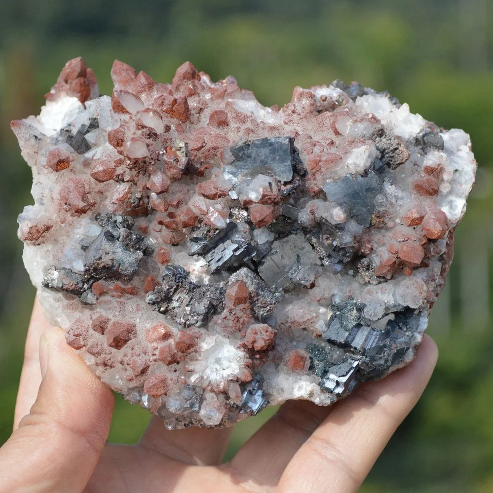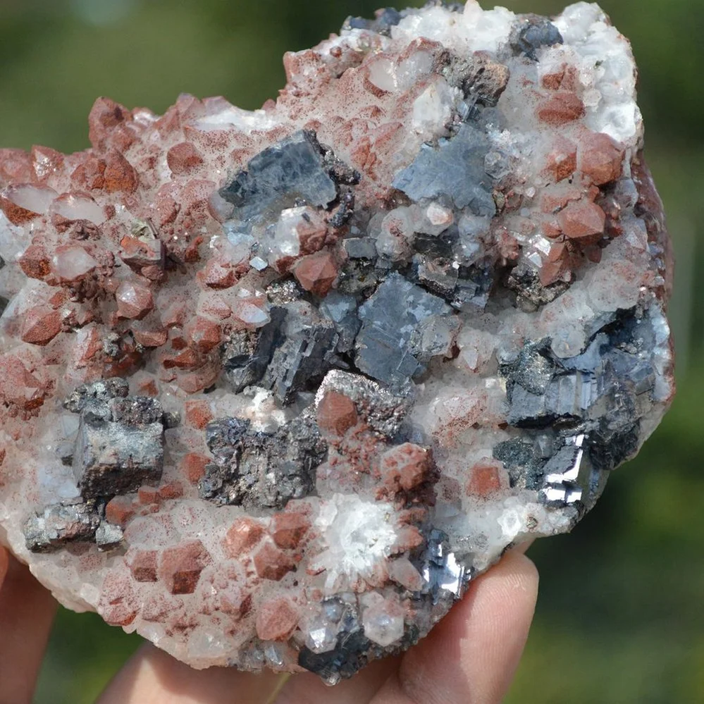 Red Quartz with Pyrite, Dolomite, Galenite crystals