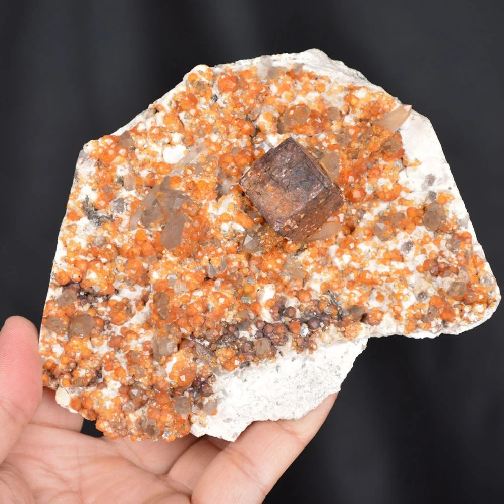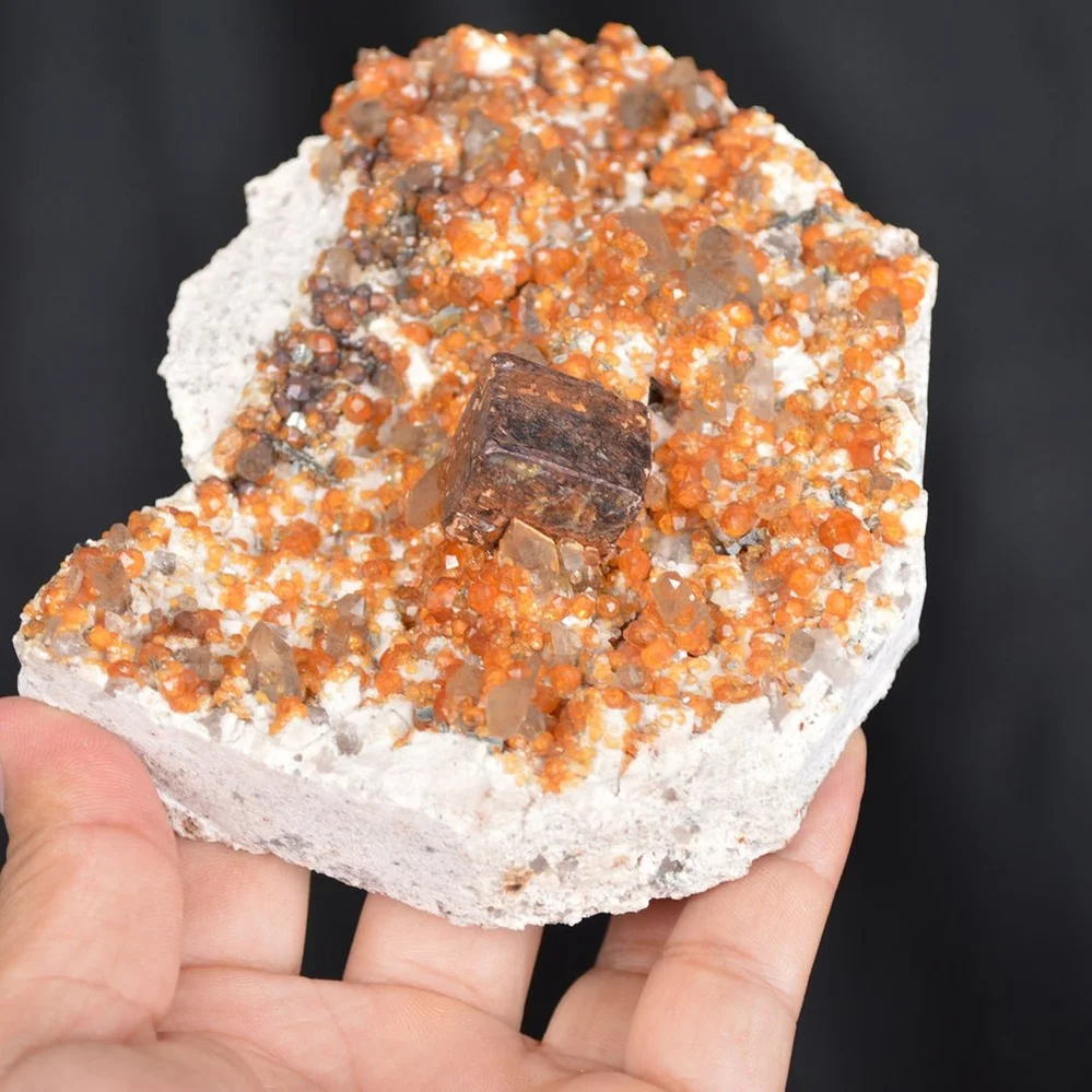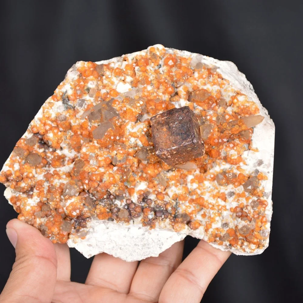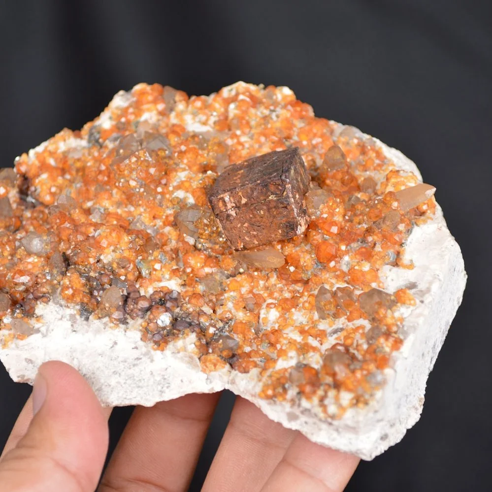 - Contains Mineral: Spessartine,Quartz,Pyrite,Feldspar,hematite