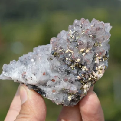 Red Quartz With Chalcopyrite, Marmatite, Dolomite Crystals