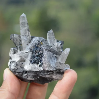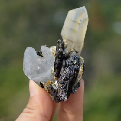 Ferberite With Double Terminated Quartz Crystals